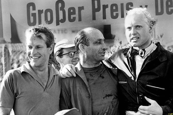 在1957年赛前,方吉奥选择离开法拉利回归到玛莎拉蒂车队,在德国站的比赛中,方吉奥一路领先,法拉利车队的豪索恩和柯林斯紧随其后,为了赶上方吉奥,豪索恩和柯林斯选择不进站,而方吉奥在13圈的时候进站换轮胎,维修工把轮胎螺母给弄丢了,多花了30多秒,等他出站时法拉利车队已经领先他50秒了。