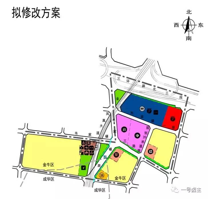 2、韦家碾公交场站的规划变化,原来设定在三环内侧,临近青岗北路的,现在被一条25米宽道路割裂后,原场地变为了二类住宅用地,因此公交场站往西移至凤凰山高架和韦家碾地铁站之间。方便周围居民乘车的同时,也将喧嚣不少。