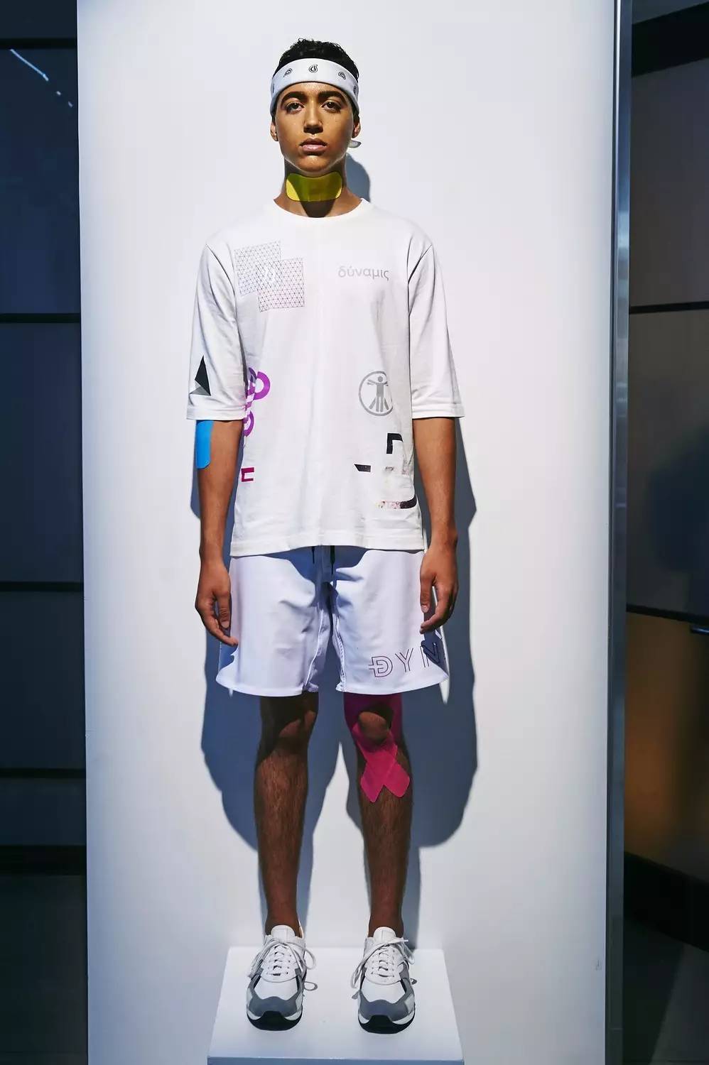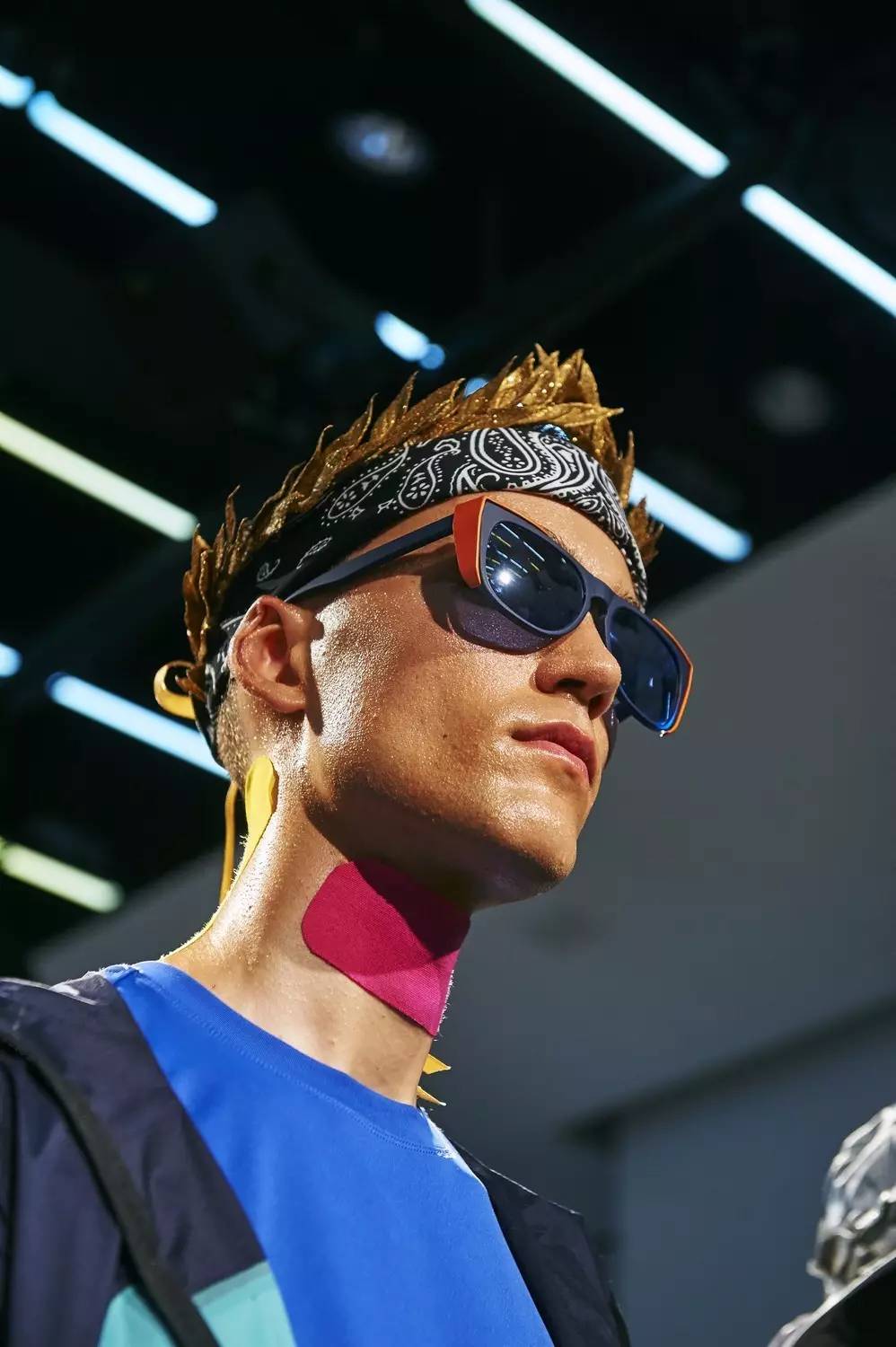 这场秀也是极致到细节处:模特的脸上有着汗水的光泽,腿上还贴着黄色肌肉胶贴。总之,可以概括成一句话:「穿成这样去运动也太酷了吧!」