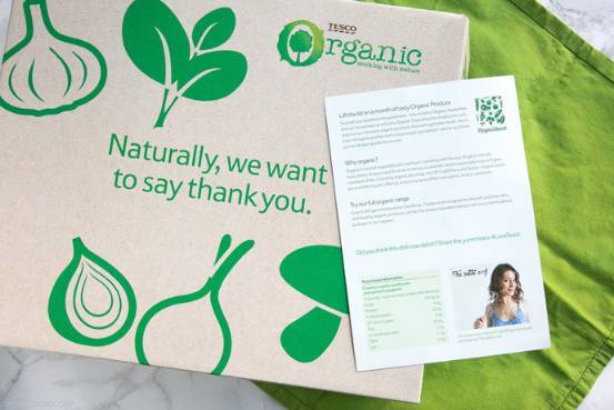 去年秋天,乐购公司与有机食品贸易委员会合作开展了一项名为“开箱有机情”(The Organic Unboxed)的活动,通过提供包含有机食材的盒子,让购买者在家中自制一顿有机餐,帮助顾客了解商店中有机食品的广度。活动中,750万在线顾客收到了一份免费食材盒,根据盒内的食谱卡和信息,即可烹饪出像美食博主专门设计的美味有机食品。