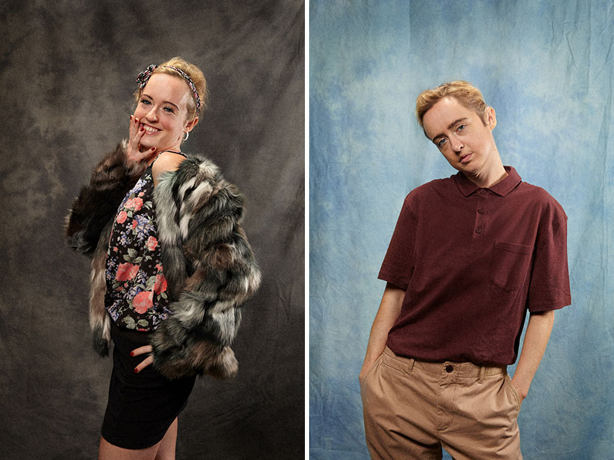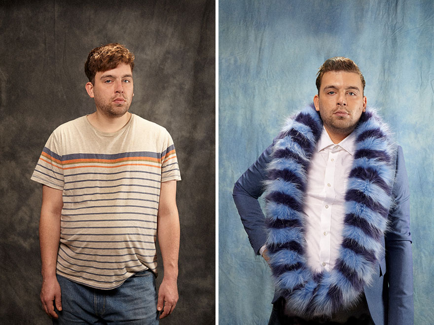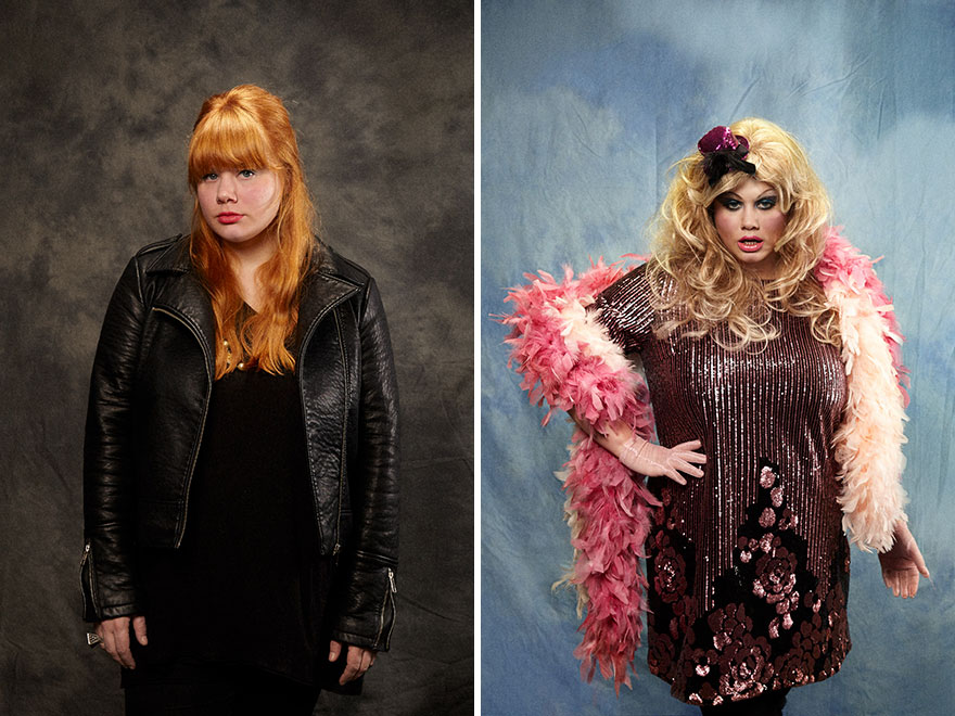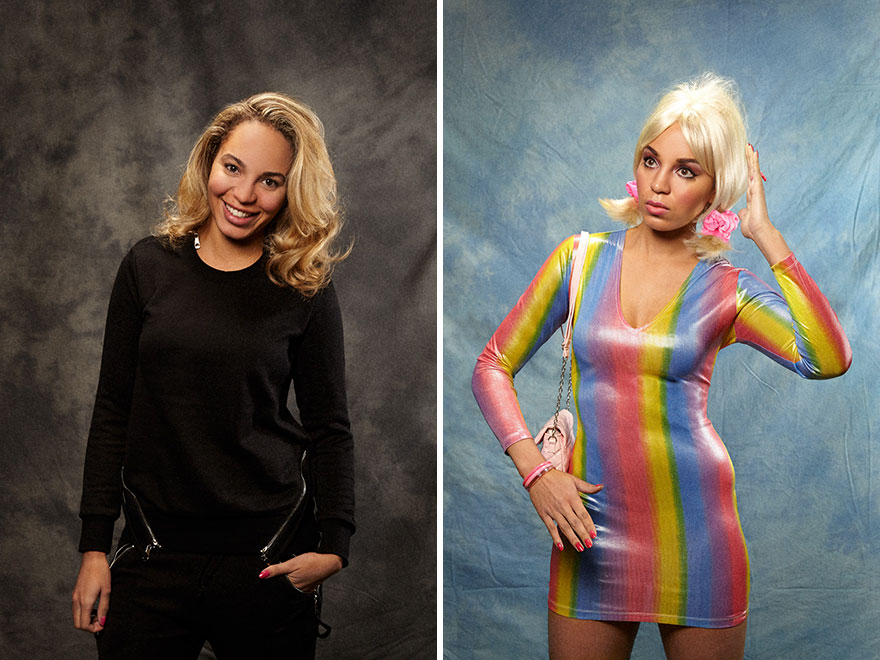 “为了这个摄影项目,我们在网上询问许多人他们想变成什么样子。接下来我们让他们来到我们的办公室,并将他们改造成那样——哥特风、星际迷航死忠粉或人类娃娃,”主创们这样告诉Vice。“最后,我们会上街走走,询问陌生人我们的客户是妆前还是妆后更好看。”