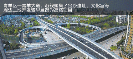 交通始终是一个区域发展的命门,只有交通便捷才能带动人气、财气同时滚滚向前。青羊区、武侯区、金牛区、锦江区以及成华区,成都核心五大主城区,每个区都有一条以自己区名命名的大道。