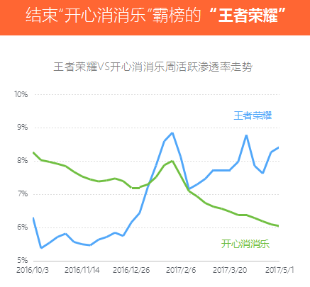 数据说明:纵轴代表周活跃用户渗透率。周活跃渗透率=app的周活跃用户数/中国市场总周活跃用户数。数据周期:2016.10.3-2017.5.1。