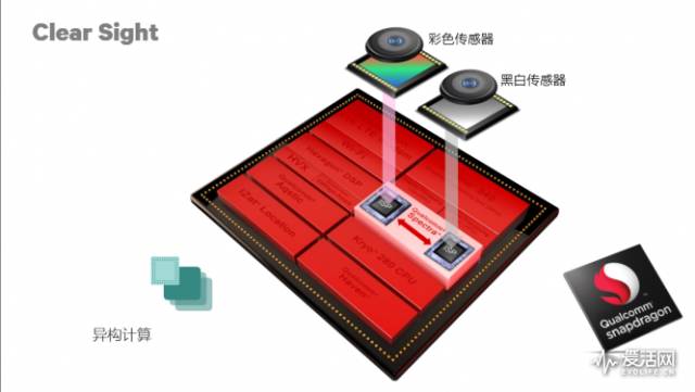 更为重要的是,Spectra 180 ISP支持高通Clear Sight双摄像头方案,这是一种利用黑白彩色双摄像头采样合成提升画质的算法。众所周知,缺乏拜尔滤镜的全透光感光元件虽然只能拍摄黑白照片,但却能因此获得比传统RGB感光元件更高的感光度,在宽容度、弱光环境的表现会更为出彩。Clear Sight方案则是采用这颗全透光感光元件进行画面细节的捕捉,以获取更高的感光度来获得更好的高感和细节表现,再用一侧的RGB传感器来负责色彩的填充,从而提升画质。因此,正是有了Spectra 180 ISP,IMX350以及IMX398才能发挥出其真正的威力。