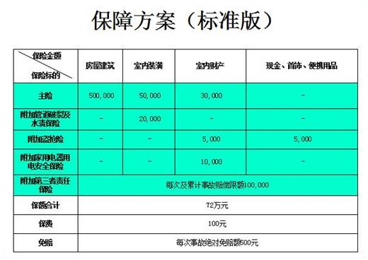 满堂福家财险激活卡,这是为方便消费者灵活投保设计的一种新形态,本质上依然是包含地震责任的满堂福家财险。激活卡保障方案如下: