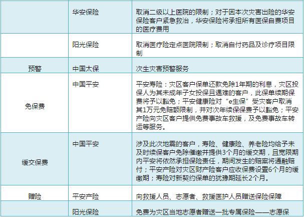 针对九寨沟县和精河县地震,各保险公司都推出了特别服务,下附部分保险公司地震特别服务: