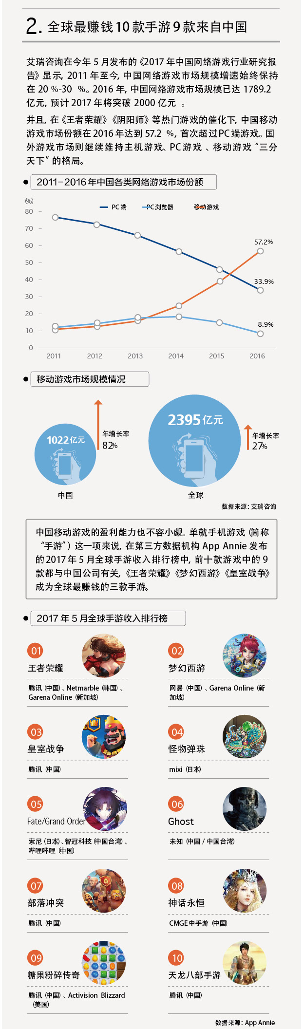 2016年,中国游戏收入跃居全球第一,达244亿美元。