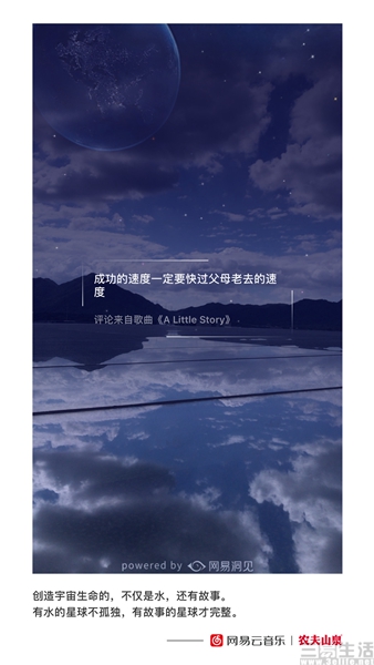 网易云音乐本来就不仅仅是一个音乐播放器,而是有温度的音乐社区,“乐评”作为网易云音乐区别于其他音乐APP的主要特征,借助这一内容介质无疑是和用户最好的连接点。农夫山泉作为快消品,需求量总是有的,并且能到达一般互联网产品所无法触及的区域。借助其多年积攒下的渠道优势,当数亿瓶“乐瓶”放上各地区的货架时,网易云音乐也能轻松吸引那些过去不了解的用户尝试他们的软件。