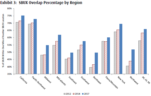 该报告认为,星巴克门店重叠度之高或已到了影响门店之间销售额的地步。“星巴克同店之间的竞争正越演越烈,新店的强劲表现似乎是牺牲了已有门店的客流量取得的,至少有一部分是如此。” BMO分析师安德鲁·斯特雷齐克(Andrew Strelzik)说。他认为,星巴克的问题不仅是如何促进销售增长,而且应该放缓在美国的扩张步伐。
