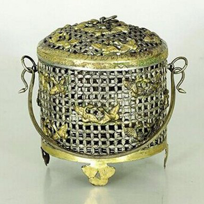 (鎏金飞鸿球路纹笼子 唐)