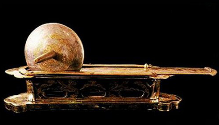 (鎏金鸿雁纹银茶碾)