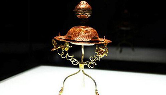 (鎏金摩羯鱼三足架银盐台)