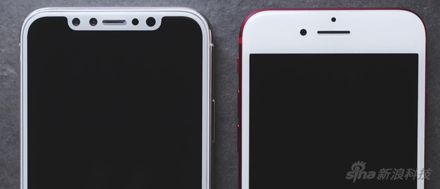 (如果传闻真的靠谱)苹果似乎收窄了屏幕边框,跟iPhone 7比确实窄了一点点,但在白色玻璃的映衬下,边框宽度依旧感人;从尺寸上对比的话,屏幕跟iPhone 7 Plus相近的iPhone 8模型,机身宽窄度却跟4.7英寸的iPhone7类似。这就是全面屏的好处。