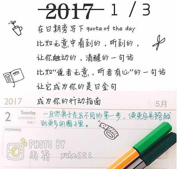 同样的困惑,起初在用公众号分享手帐经验的时候雨荷也不知道该扮演什么角色。她去看其他手帐博主的图片,颜色对比明艳、胶带贴画复杂,手帐做得像艺术品。雨荷并不擅长画画,也不愿意花时间做贴画,“我觉得我偏向日程管理、计划效率反思总结,正好网上缺这样的手帐博主,可以把这个分享出来。”其实雨荷的反思恰好符合USP理论——找到产品精髓,强调自身特殊性。这一理论的经典案例是M&M巧克力的广告词“只溶在口,不溶在手”。“你看我1月份推送的文章和5月份推送的文章,底部我的个人介绍是不一样的,因为一开始我也不知道我要写什么。”雨荷在半年时间里摸索自己的风格,甚至包括公众号更新的内容也是在一篇篇推送过程中渐渐发现自己感兴趣的、关注的和愿意写的东西。别的巧克力再甜也没有关系,我们做那颗拿在手上不会化掉的巧克力豆就好,首先保持自己的颜色。