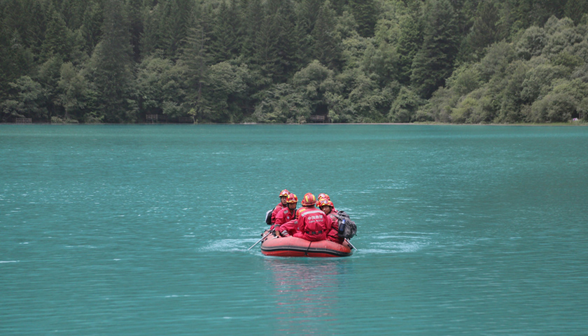8月12日11点左右,中国地震救援队26名队员在6位家属的陪同下,分坐两辆中巴出发,进入九寨沟景区进行搜救工作。26名救援队员在熊猫海进行了3个小时的水面搜寻和岸边挖掘,一些队员利用还工具探到水下搜寻,但最终没有发现失联者。