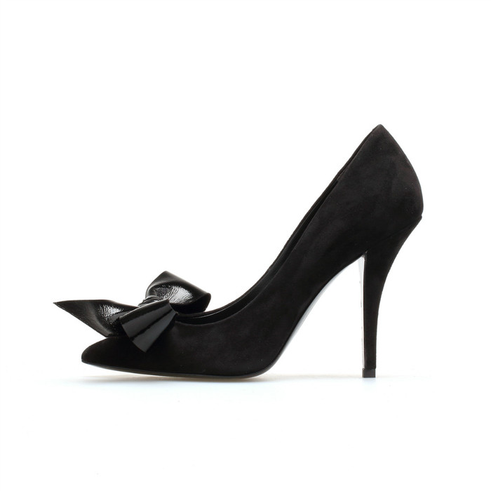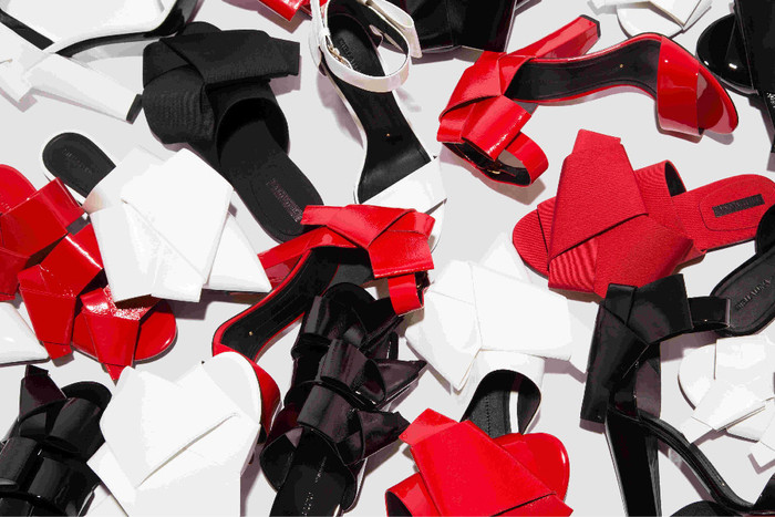 蝴蝶结很忧伤,虽然长期受到时尚圈的重视,却一直摆脱不了柔美、少女的固有形象,而本季,STELLA LUNA要为蝴蝶结正名。品牌创意总监Capucine Safyurtlu将“大一号”的蝴蝶结推向洒脱独立的都市女性受众,以黑白红作为基调,搭配缎面、羊反毛皮及漆皮材质,创造 了Stella Bow系列蝴蝶结款女鞋,包括高跟鞋、高跟凉鞋、平底拖鞋等。蝴蝶结如是,却无任何甜腻、不消化之感,黑白灰在改变整体风格方面的魔力再次被论证,如果想礼貌地抓人眼球呢,那就选红色。
