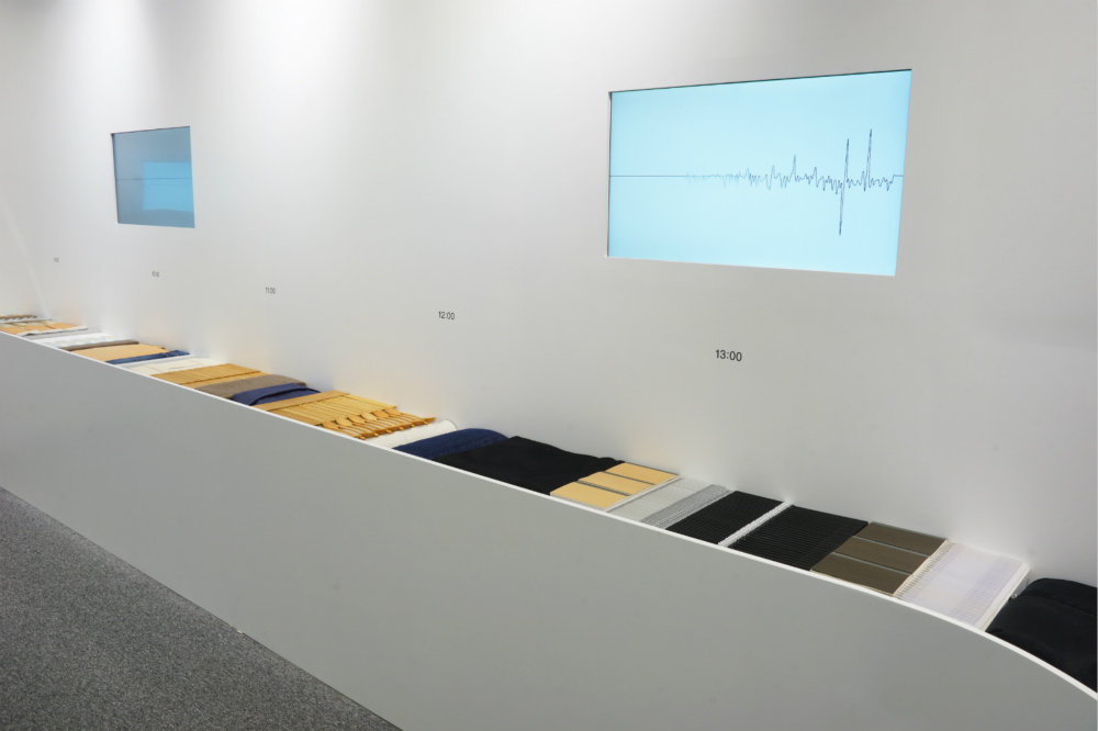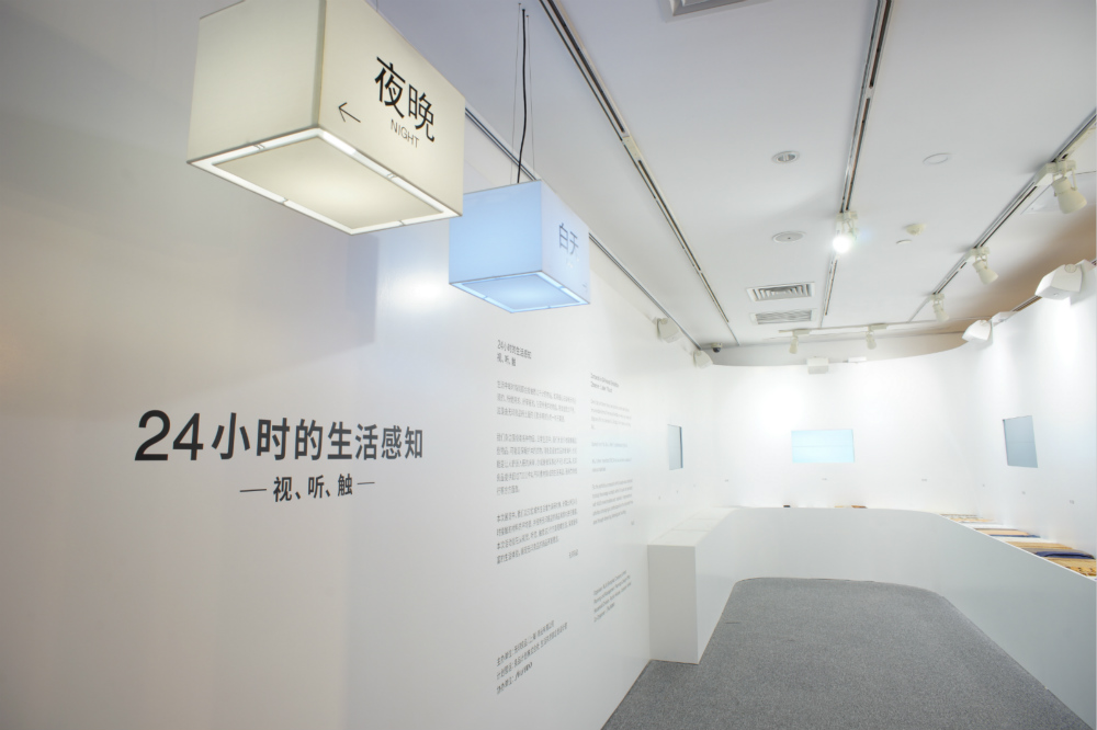 展览本身同无印良品的风格一样简洁,但展览背后的制作过程可谓繁复。无印良品生活杂货企划部调查了以日本东京为中心的50位城市生活者,调查他们在一天24小时中触摸到的物品,并通过“HapLog手指触觉感应器”技术计算其材料的平均值,再根据数据重建出一条以无印良品商品为主角的24小时时间线。