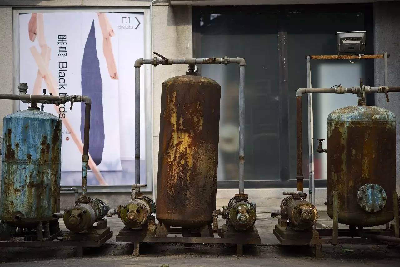 ▲废弃的机械设备,涂上外漆,又是独特的造型。