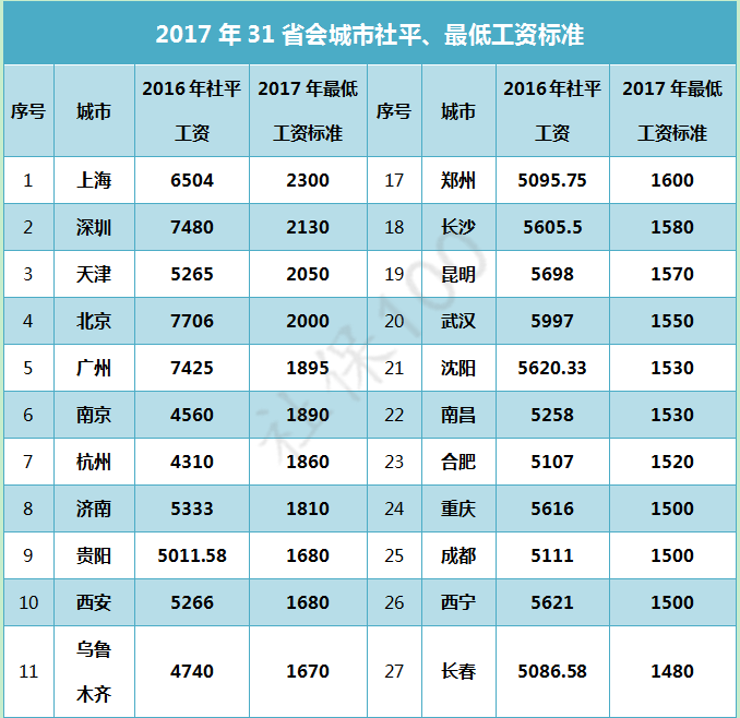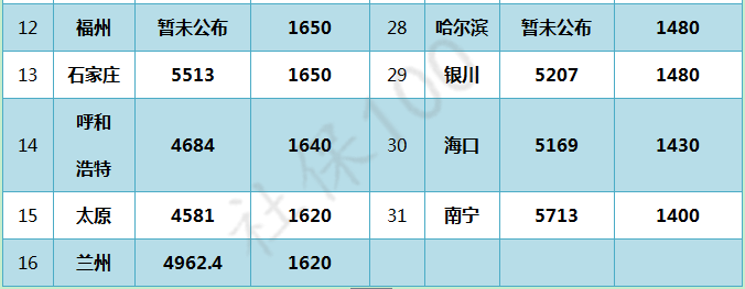 最后,送上全国31个省会城市的最低工资和社平工资标准表,快看你拖后腿了没!