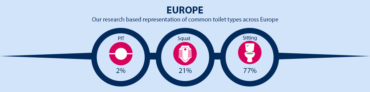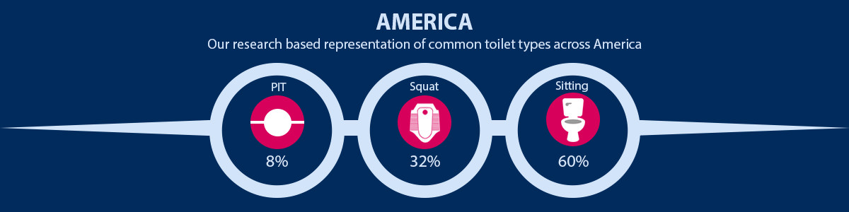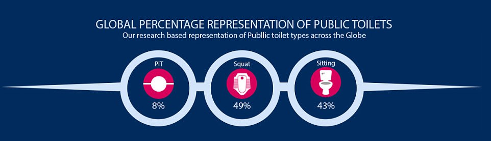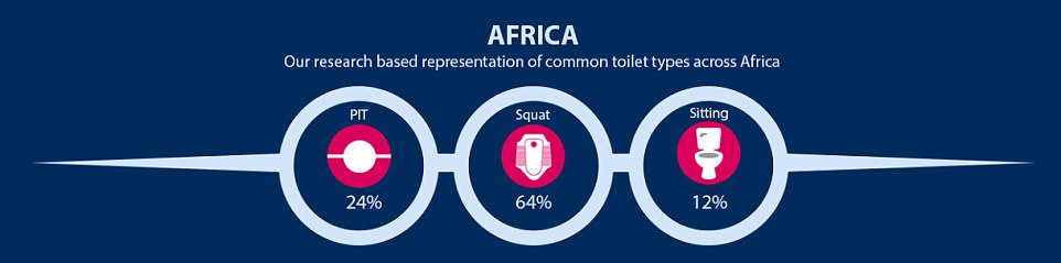 当然,如果是到了亚洲和非洲,数据结果截然相反。在非洲使用坐便器概率只有12%,亚洲略高,为27%,而使用蹲坑的比例在亚洲和非洲的比例是64%和74%。