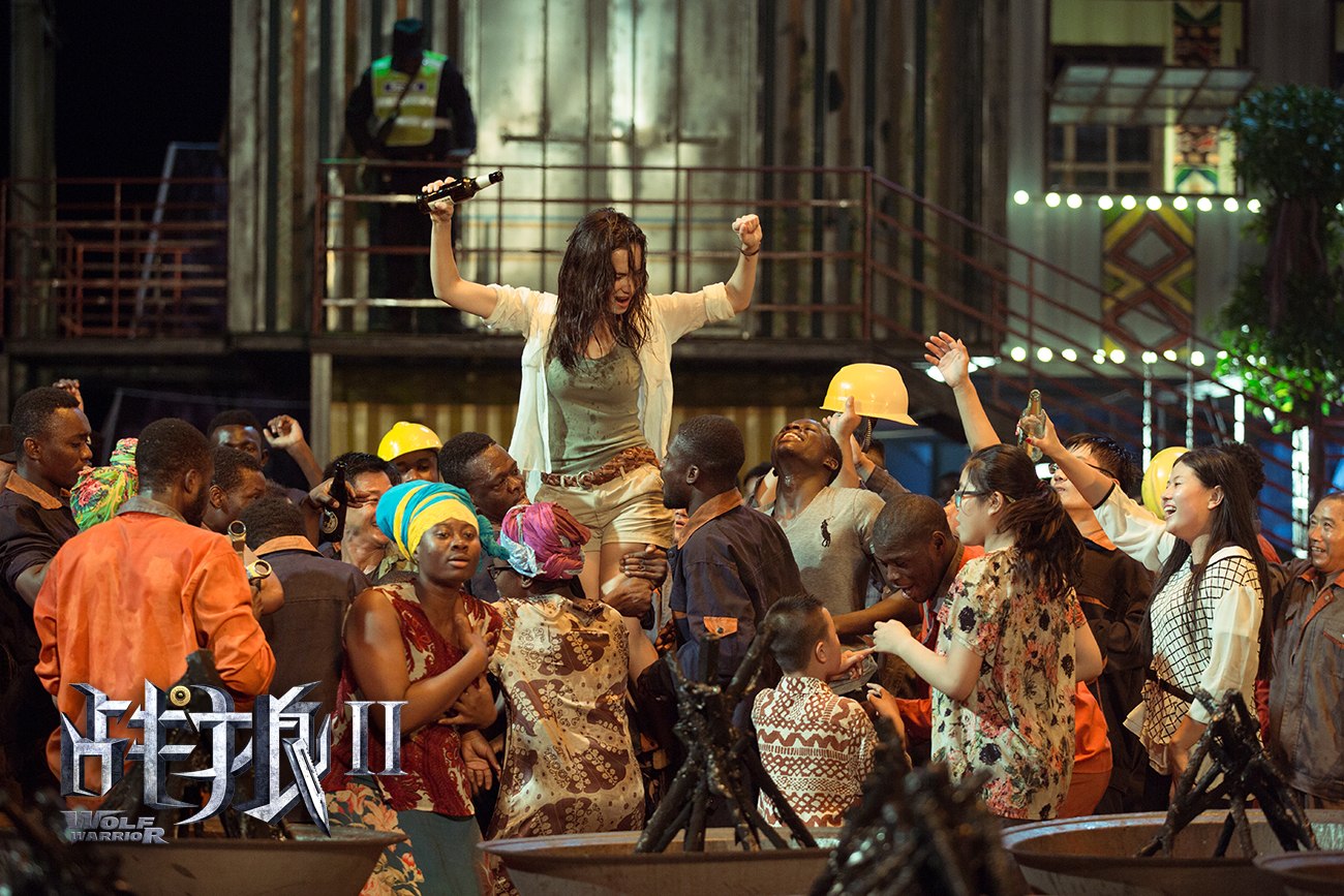 而《战狼2》在主题上进行了一次有效的自我迭代,它没有将民族情绪继续向前推进,而是选择后退半步,试图赢得更多受众的认同。这种“后退半步”的余裕,一方面体现在中国官方的保守克制,在没有叛军伤害中国公民证据的前提下,坚决不出兵干涉;另一方面则回归到最普世的亲情和友情,最后撤离时,将中国工人的非洲妻子和无辜的非洲儿童也带上了军舰,这种巧妙的回旋,让《战狼》系列从民族主义的狭隘走向中跳脱出来,赢得了新的表达空间。