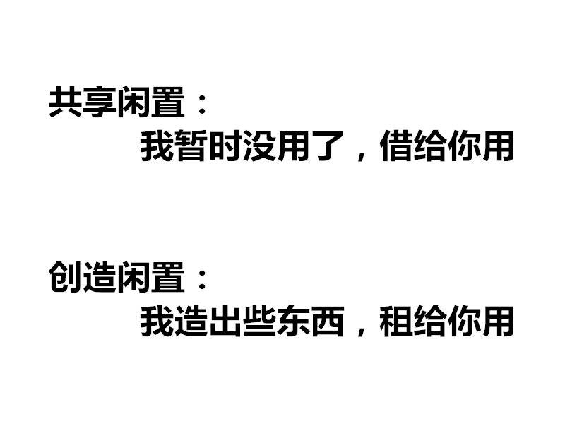 但其实这不是问题的关键。“共享经济”鼻祖罗宾蔡斯女士提出了一个公式:闲置资源+共享平台+人人参与。因此,真正是不是共享的关键,在于是否闲置。