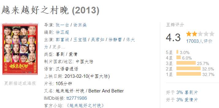 导演谢东燊以前是张艺谋的御用副导演,曾参与过《一个都不能少》《我的父亲母亲》《幸福时光》的制作。最新的一部《越来越好之村晚》成绩也不尽人意,豆瓣只有4.3分。