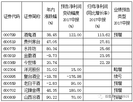 据申万行业数据,两市合计有19家白酒企业,截至目前,已有5家白酒类公司披露了正式中报,虽然大部分白酒企业中报披露要等到8月20日以后,但从已公布中报业绩的公司来看,这5家白酒企业今年中期全部实现盈利,且净利润同比全部实现增长。其中,贵州茅台2017年中报实现净利润112.51亿元,同比增长27.81%,净利润额暂居首位;酒鬼酒实现净利润8277.14万元,同比增长113.62%,增长比例暂居首位。水井坊、金徽酒、今世缘等其他3家公司净利润均过亿,同比增长则均超过20%。