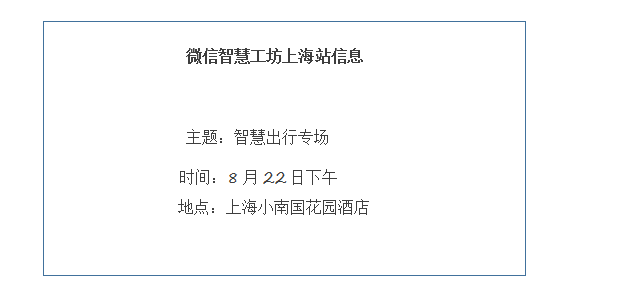 8月22日下午,微信团队将带着公共出行、个人出行的最新解决方案来到上海,展现微信智慧出行解决方案的最新成果,描绘智慧出行图景。