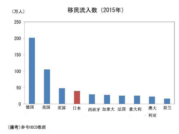 让内向、保守的日本人震惊的是,根据国际标准,日本已经成为了“移民大国”。按照“在国内滞留一年以上的外国人”属于移民的标准,在国际机构经济合作与发展组织(OECD)的数据统计中,2015年日本接收的移民数量约为40万人,接收移民数量庞大,在发达国家之中排名第四。接收难民的德国位居第一,美国、英国紧跟其后,然后就是日本。这个数字甚至超过了加拿大、法国、意大利、澳大利亚——这些国家一向是被公认为更富有国际色彩的。