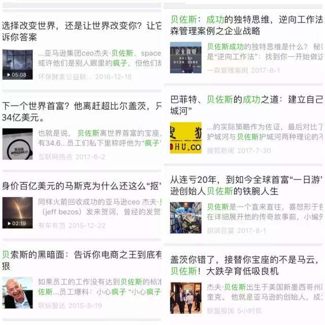 看到贝佐斯和亚马逊取得巨大的成功,媒体开始“奋起直吹”。比如:“贝佐斯创造了新的商业哲学”、“贝佐斯,最有远见的CEO”、“贝佐斯从连亏20年,到如今的全球首富”、“贝佐斯:成功的独特思维。”称赞声,接连不断。