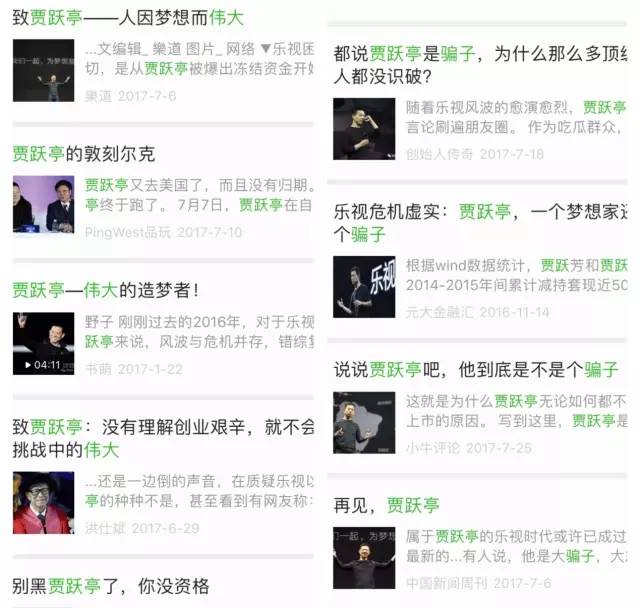 那些曾经追捧贾布斯的媒体,在乐视出现危机后,如“乐视生态帝国是一场迟早都会碎的黄粱美梦”,“贾跃亭个人的野心、独断是造成乐视危机的真因”、“乐视的失败早已注定”在内的批判声,此起彼伏。最终,贾跃亭从乐视出局,远走美国。