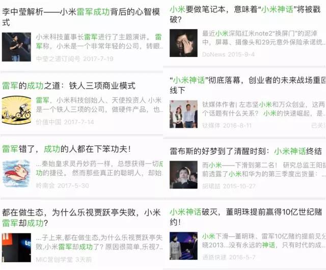 小米刚成长起来,快速上升的势头就被打压住。于是舆论开始倒戈相向,“小米神话彻底落幕”、“雷军的好梦终于到了清醒时刻”、“当风口已成往事,小米从神话变成笑话”。