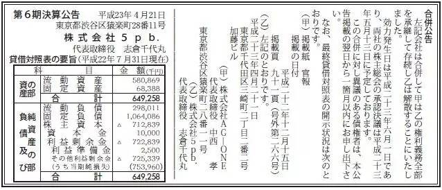 AG-ONE与5pb.合并公告