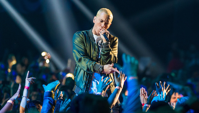 “随性痞气不松垮,清新简约又低调”,姆爷可谓是嘻哈圈子里的“小清新”。最为标志的就是他的金发寸头搭配各种帽子。早期的Eminem经常穿着背心T恤或者拉链帽衫演出。后来有了更多的搭配单品,比如运动夹克、T恤和鸭舌帽。