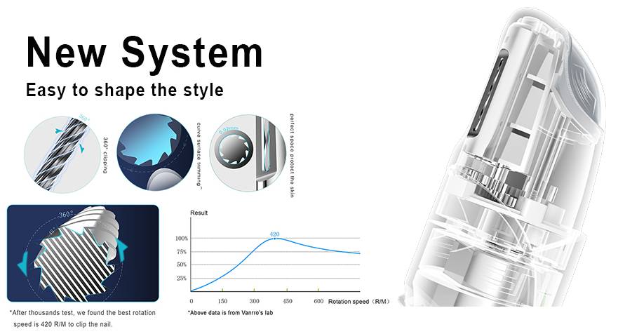 V1 修剪系统与指甲之间预留了一定的安全距离(安全槽),完全不会伤到手指。