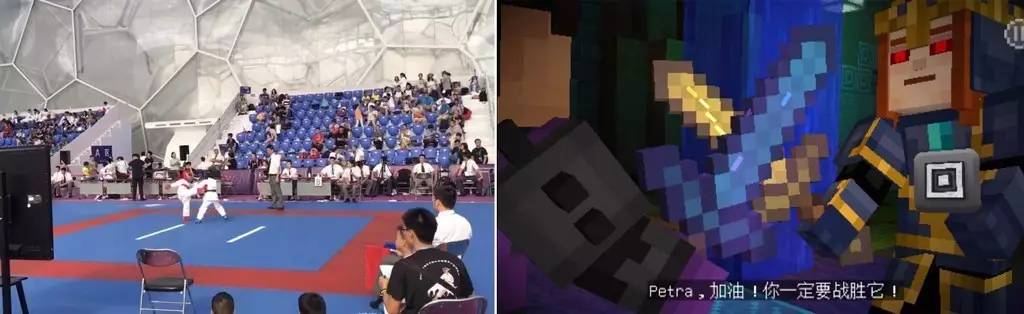2017年8月,全国青少年竞技空手道锦标赛,毕海天打完自己的比赛后,在看台上带着他的队友和对手运动员一起玩《我的世界》。