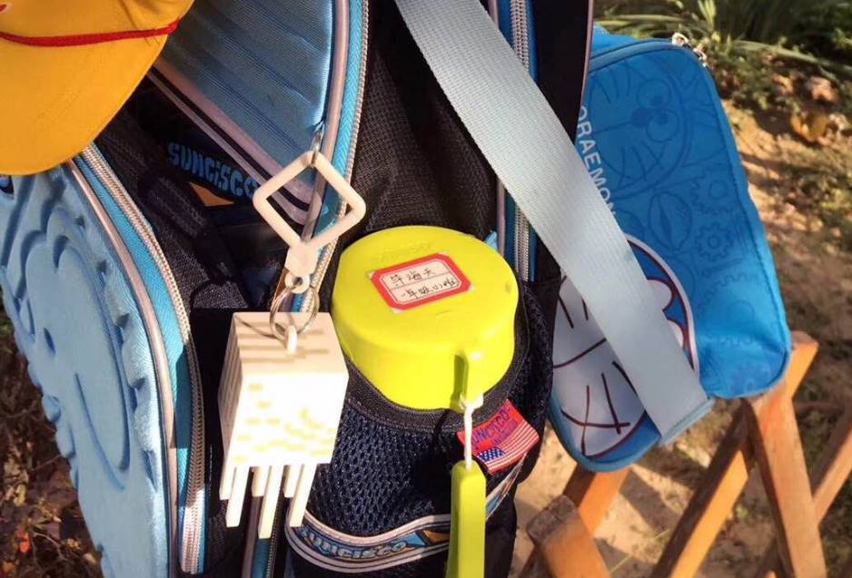 他背着小书包,提着小便当盒去上学,书包上吊着一个《我的世界》小玩具。