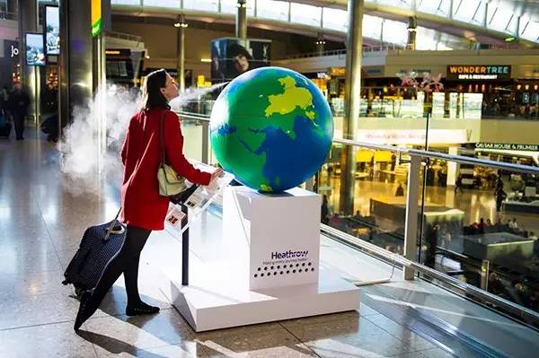 为了帮旅客创造独一无二的旅行体验,英国希斯洛机场与香水制造商Design in Scent携手打造「香氛地球仪」,让旅客在出发前,就能以香气唤醒旅游记忆。