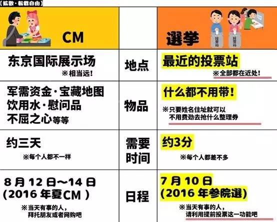 他在推特上发图,向宅说明“参加选举,比买本子要简单很多”