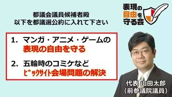 2016年,参议院半数席位需要重新选举。找不到的好下家的山田太郎,这次不得不自掏腰包竞选。然后他的诉求也很特立独行,除了保护制造业之外,还是一贯地“保护表现自由”。