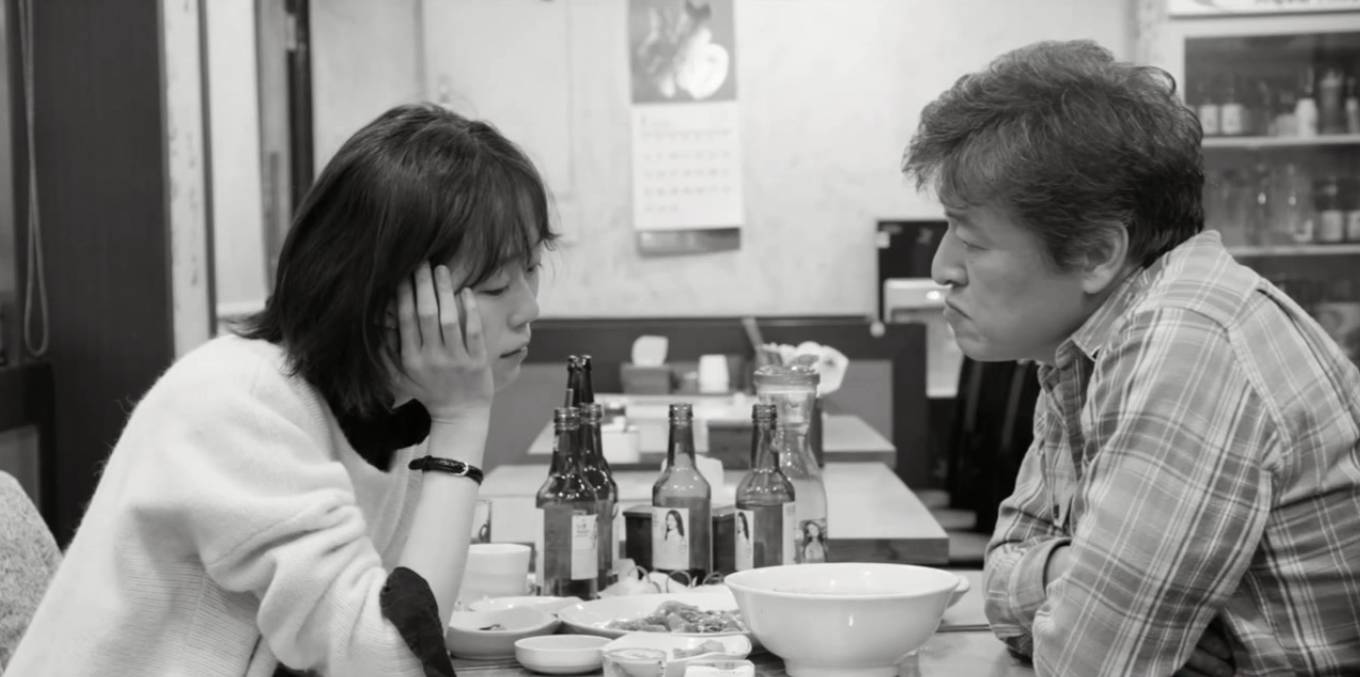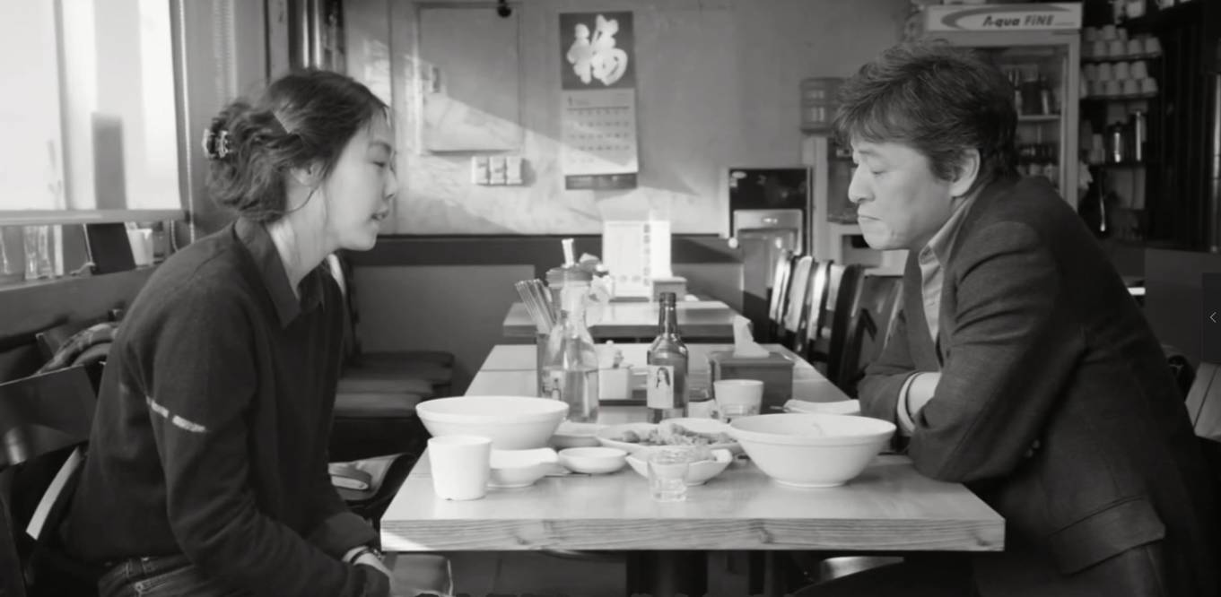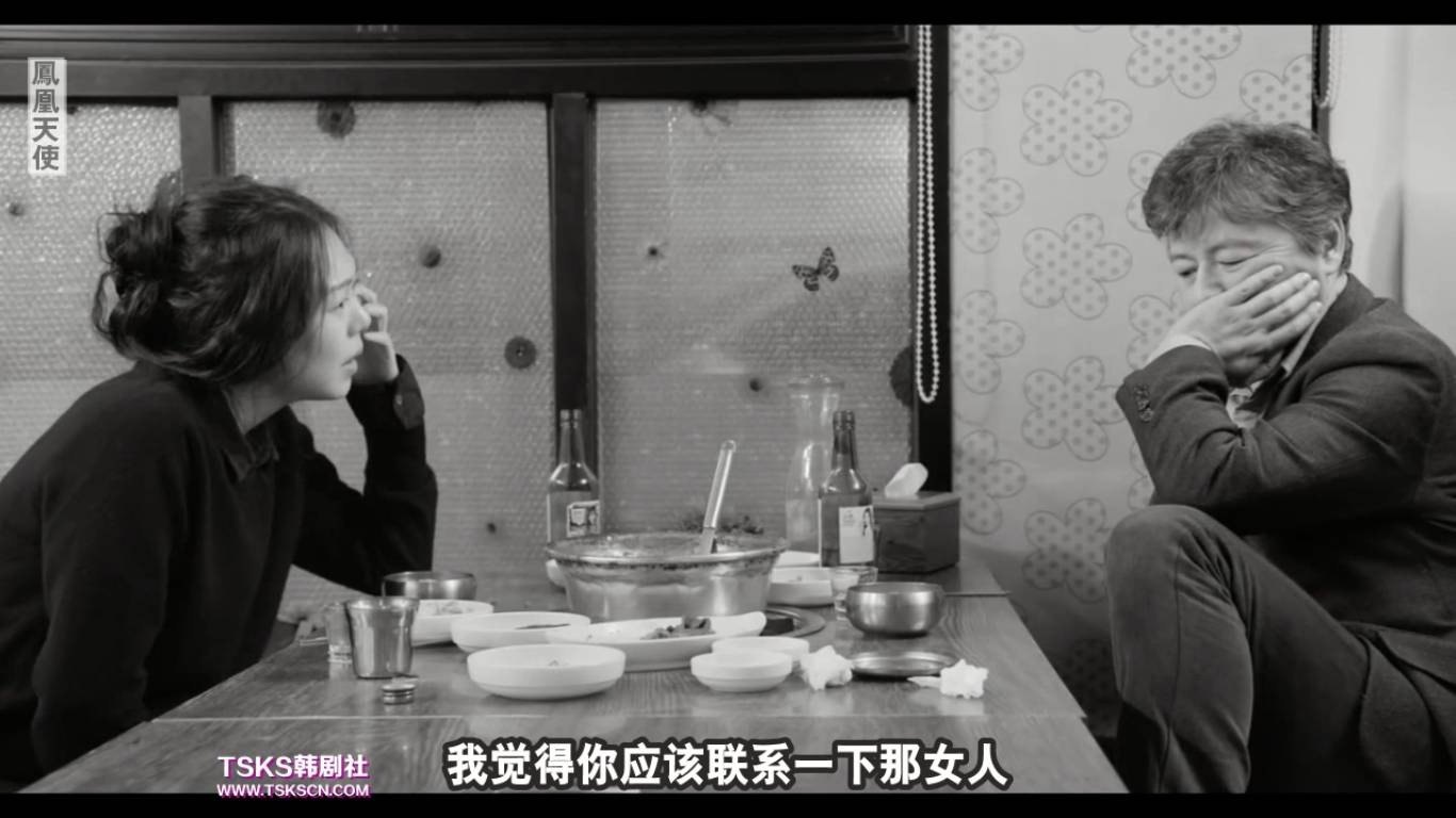 这两场戏,前面一场十分钟,后面一场五分钟,等于是缓慢加速后的发力结构。二人吃饭的地方亦同为中餐馆。雅凛穿黑衣,昌淑穿白衣。形同对比,更反照出善完的虚伪性格,同时在叙事也给观众一种虚幻的错觉。