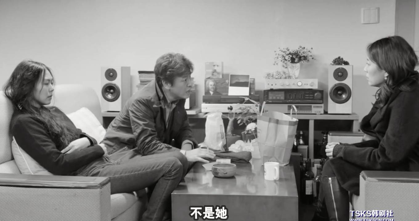 出版社里如当年雅凛、昌淑一般唯一的女职员前来倒茶,却只闻其声不见其人,人物形象被隔绝在画面之外,吃饭只是点了外卖。导演的用意是暗指,此时的善完彻底回归了家庭,内心世界封闭,不再有可能性。正如他自己所说“回归家庭,放弃了我的人生了吧”。