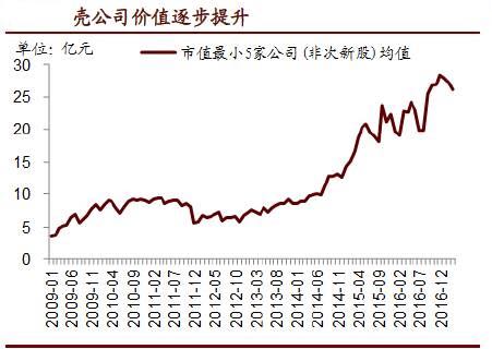 2009年初至2016年底壳价值逐步提升(图片来源,Wind、招商证券)