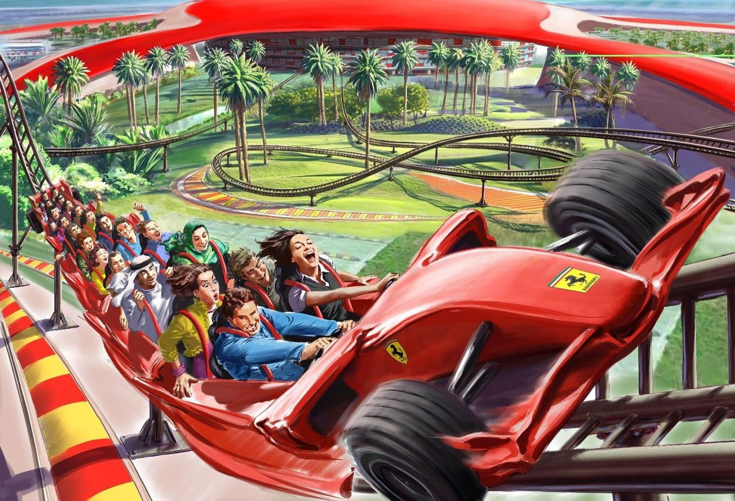 法拉利世界阿布扎比是法拉利与阿联酋物业发展管理和投资公司Aldar Properties PJSC共同开发完成的,为了赞扬法拉利多年来一直代表的热诚,卓越,表现和技术创新,并向游客们展示法拉利的故事和赛车的激情。