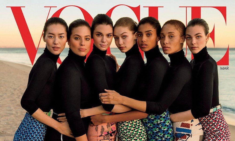 此前,美国版VOGUE还推出过一个“时尚圈中无畏的女性”封面,纳入了黑人模特、大码模特和亚洲模特,以强调时尚界的包容性和多元化。可是,有色人种、50岁以上以及LGBT群体的的女性还是很少出现在杂志封面。根据The Statistics Portal对2016年的杂志调查,在总数为679本的杂志封面中,有34名50岁以上的女性,仅占总数5%,而非白色人种仅为29%。不过,这也比2015年增加了6.2%,比2014年增加了11.6%。