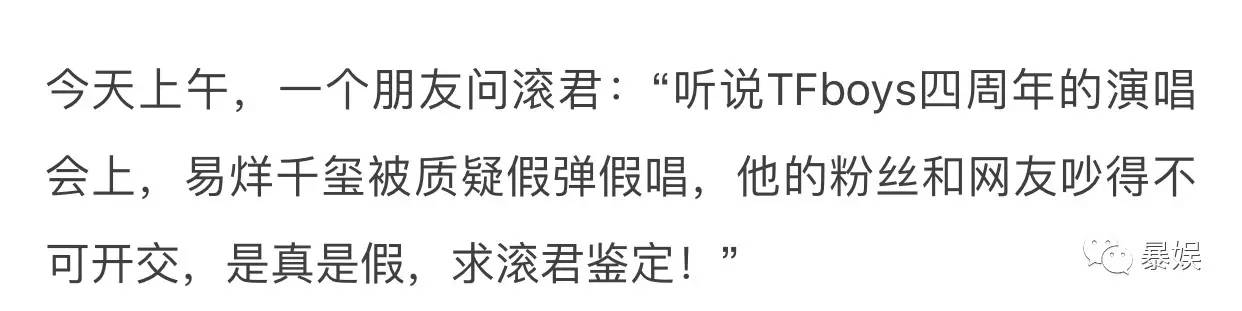 要知道听现场最反感的就是假唱,TFBOYS这算是撞枪口上了。所有的被黑都是有迹可循的,易烊千玺也是有黑历史存档的。早在去年的演唱会中,易烊千玺全程原音对口型被网友诟病,但在今年的演唱会中,易烊千玺确实是真唱了。