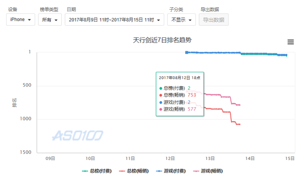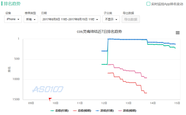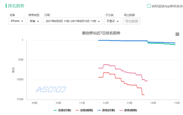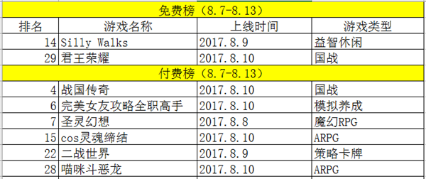 TOP30方面,除了少数的老牌游戏常客,如《无双三国志PK版》《地下城堡2: 黑暗觉醒》《荒岛求生》《Plague Inc.》之外,清一色的“陌生面孔”。本周排名第14的《御剑修仙》此前排名在1000开外,在8月12日突然崛起,并且毫无征兆,游戏内也无更新活动。《cos灵魂缔结》也是如此,在8月12日排名直线上升。而除此两款游戏之外,其他游戏均有不同程度的提升。老牌品质游戏《纪念碑谷2》和知名新游《喵咪斗恶龙》则被挤出TOP30。