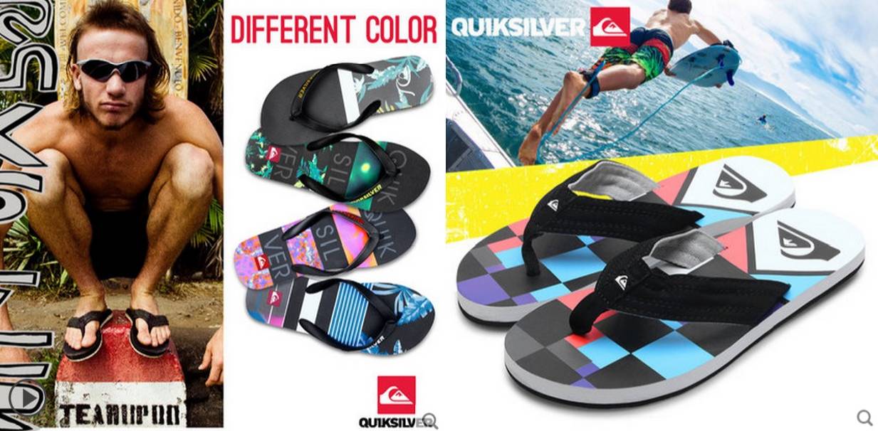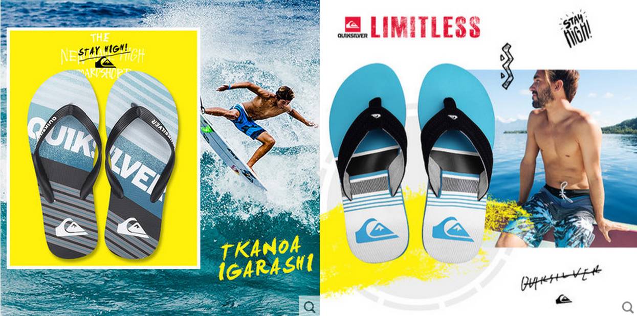 Quiksilver原本是澳大利亚冲浪户外品牌,它的人字拖与前面几家的热带风情有着显著的区别,大概是因为冲浪基因,蓝色绿色等冷色调在设计中得到了广泛的运用,海洋元素和清凉配色简直就是为了夏天而生。