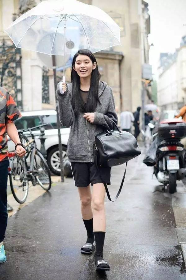 ↑奚梦瑶的黑色拖鞋+黑色袜子搭配也是酷劲十足